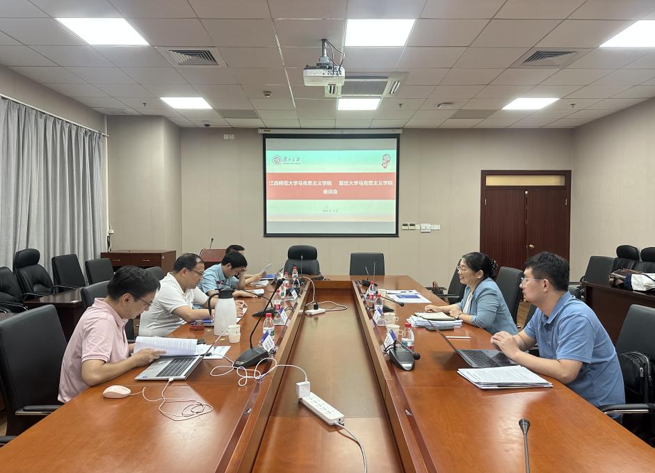 复旦大学马克思主义学院院长周晔研究员、副院长李国泉研究员、院长助理阚道远研究员和林青教授接见了尤琳院长一行。尤琳院长简要回顾了复旦大学马克思主义学院支持江西师范大学马克思主义学院发展的点滴和成就,重点请教马克思主义理论“本硕博”贯通一体化培养模式改革、马克思主义理论学科专业动态调整机制与管理创新、新兴交叉学科与马克思主义理论学科专业建设、“人工智能+”行动与马克思主义理论学科专业数字化升级等方面的经验。