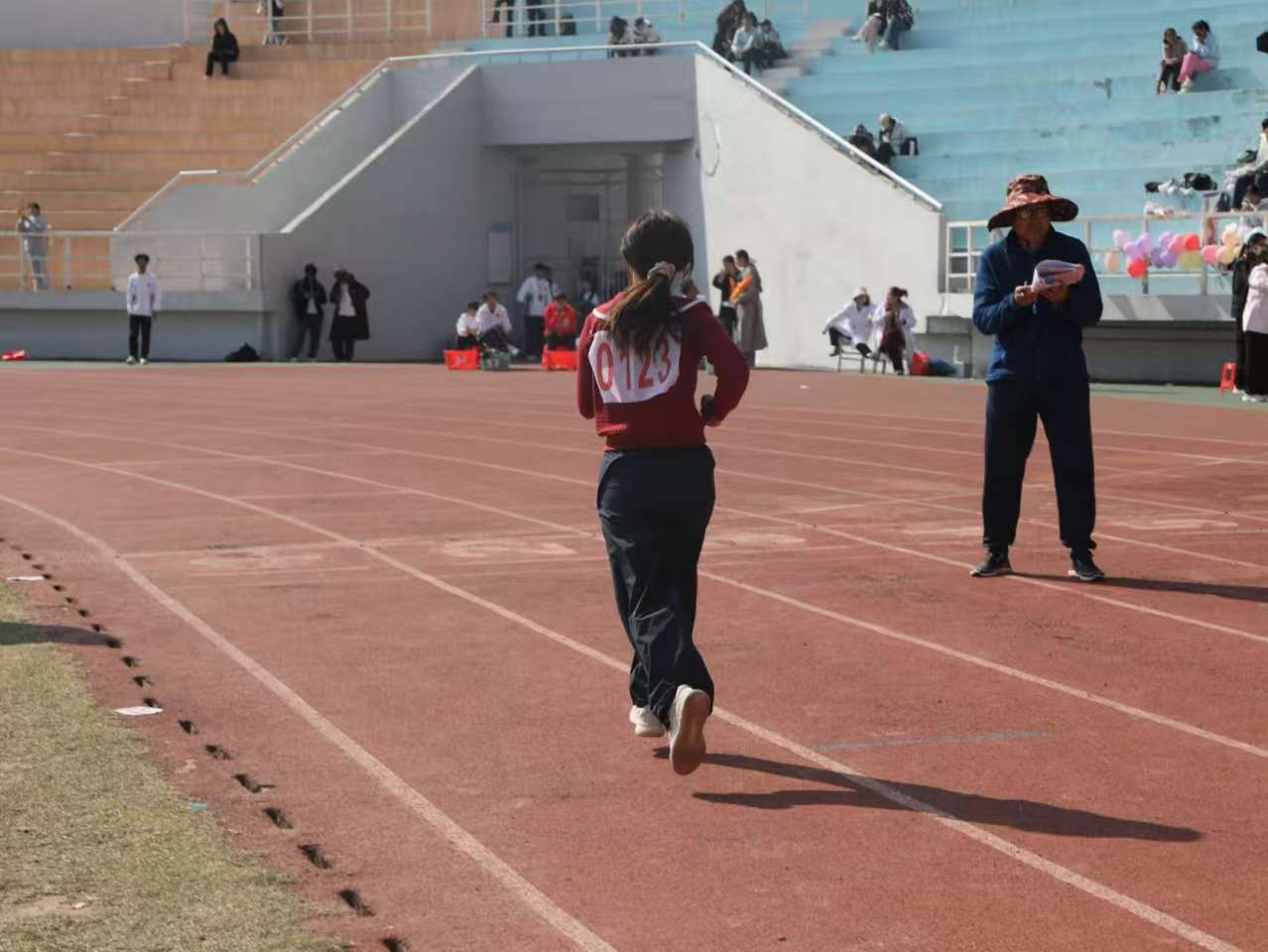 在考验毅力与体能的女子3000米、女子800米和男子800米项目中,马院的长跑选手们用脚步丈量意志的强度。他们调整呼吸,稳扎稳打,任凭汗水浸透衣衫,眼神中始终闪烁着坚持到底的锐利光芒,每一步都跑出了马院学子的坚韧与执着。