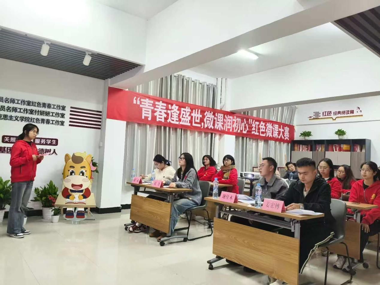 2025年10月26日,江西师范大学马克思主义学院团委联合教育部和江西省高校辅导员名师工作室红色青春工作室,举办“青春逢盛世,微课润初心”主题微团课大赛。参赛选手们紧紧围绕比赛主题,以饱满的精神状态、生动的语言表达和独特的观察视角,辅以PPT展示、视频音频等多种形式,进行团课讲授。