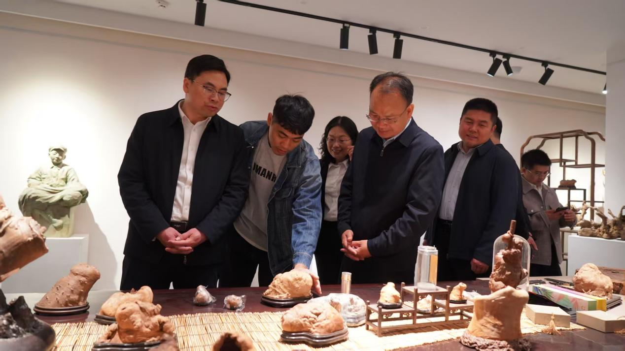 在寻乌调查·1930红色文旅街区,杨卫军副校长进入寻藏木雕工作室,与省级“四个100”非遗导师何坤校友亲切交流,鼓励他不仅要展示好精湛技艺和创作成果,更要积极发挥“传帮带”作用,培养更多基层非遗人才。他希望木雕艺术等寻乌非遗能更好地走进校园、走进千家万户,为非遗的保护、传承与创新发展注入新活力。