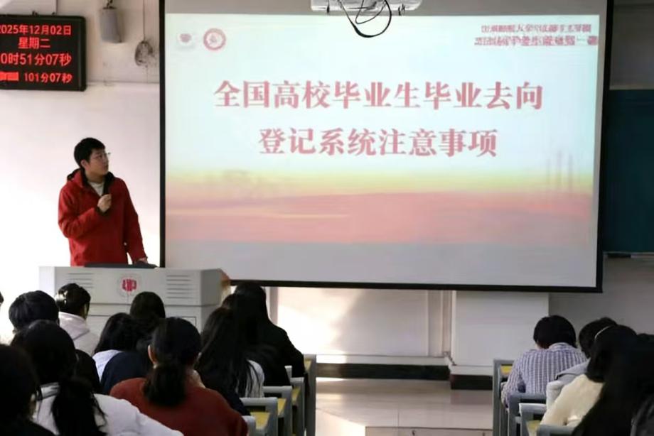最后,由井政皓同学为大家介绍全国高校毕业生毕业去向登记系统,他细致强调了操作中的注意事项,助力同学们后续毕业流程的顺利推进。