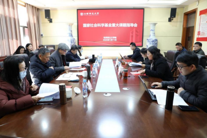 为切实提升学院国家社会科学基金重大课题的申报质量,进一步凝练选题、优化论证,提高立项命中率,2026年1月11日上午,我院邀请全国高校马克思主义理论学科研究会副会长、中国人学学会理事长、中山大学马克思主义学院钟明华教授,教育部“长江学者”特聘教授、湘潭大学毛泽东思想研究中心主任李佑新教授,教育部“长江学者”特聘教授、南京师范大学马克思主义学院王永贵教授,教育部“长江学者”特聘教授、上海交通大学马克思主义学院杜玉华教授,教育部“青年长江学者”、华中科技大学马克思主义学院董慧教授莅临学院作国家社科基金重大课题指导。会议由学院院长尤琳主持,副院长严文波与部分青年教师参会。