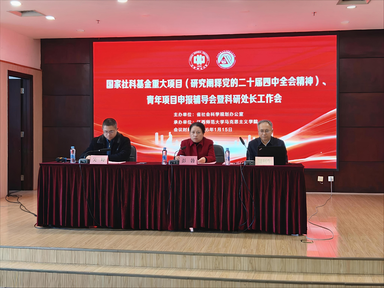 近日,江西省国家社科基金重大项目(研究阐释党的二十届四中全会精神)、青年项目申报辅导会暨科研处长工作会在我校召开。本次会议由省社会科学规划办公室主办、我校马克思主义学院承办,省社科联党组成员、副主席彭勃出席并致辞,校党委常委、副校长周利生,省内多所高校科研管理部门负责人、项目申报骨干及相关工作人员共200余人参加。